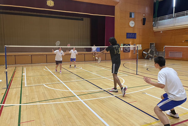 大会での勝利を目標に日々練習に励んでいます。初心者が多いですが、バドミントンに適したトレーニングや基礎打ち、試合を想定したパターン練習、フットワーク等本格的なメニューを組み込み、上達を図っています。
