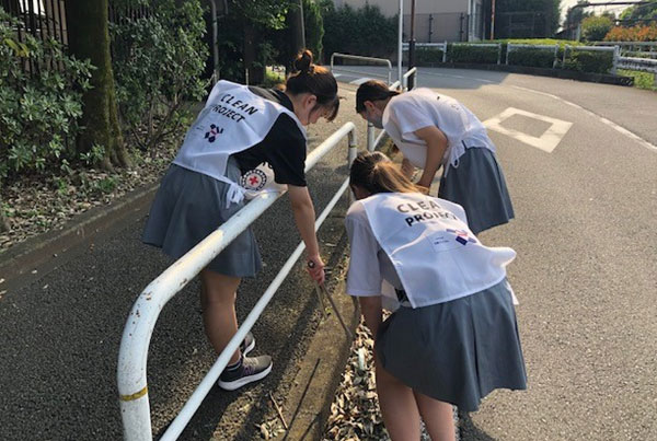 月に一度、学校周辺の地域清掃を行っています。また、桜陽祭では、フェアトレード商品の販売や白杖体験を実施します。プラスチックゴミ問題やフェアトレードなどについて学び話し合う勉強会も開催しています。