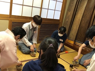 穏やかな雰囲気で部員の仲も良く、楽しく活動しています。月に2回、本校で20年以上ご指導いただいている表千家茶道教授の先生が丁寧にみてくださるので、初心者でも免許を取得することができます。